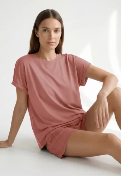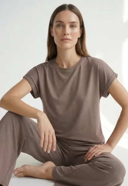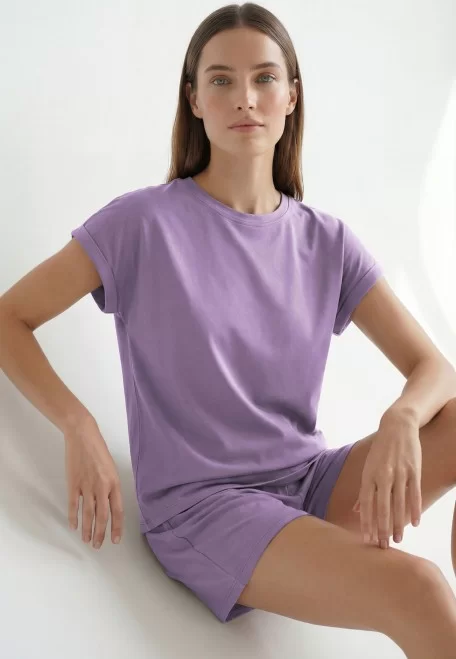 Каждый шов этой футболки выполнен с предельным вниманием к деталям, чтобы обеспечить вам максимальное удобство. Круглая горловина с аккуратной отделкой подчеркивает изящество шеи, а короткий рукав открывает руки, позволяя коже свободно дышать. Слегка скругленный низ футболки придает ей элегантный и современный вид, чтобы вы чувствовали себя стильно и привлекательно, даже находясь дома. При этом прямой силуэт универсально смотрится на любой фигуре, подчеркивая лишь ее достоинства.
