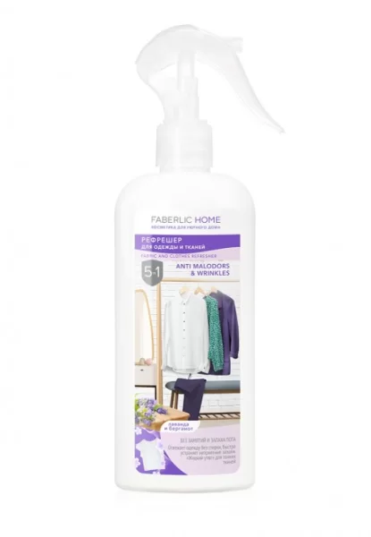 Рефрешер для одежды и тканей «Лаванда и бергамот» Faberlic Home наполнит ваши вещи приятной цитрусовой свежестью с нежными нотками лаванды. Помимо этого он помогает разгладить вещи без использования утюга. Позволяет сократить частоту стирок еще чистых вещей после 1 либо 2 дней носки. Мгновенно выравнивает небольшие складочки и заломы на тканях невысокой плотности. Благодаря этому вы всегда будете выглядеть идеально, даже если у вас нет возможности воспользоваться утюгом (в командировке, отпуске и др.).