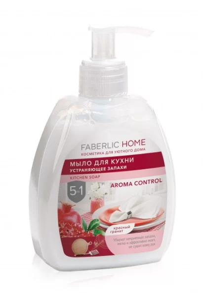 Мыло для кухни, устраняющее запахи, с ароматом красного гранат Faberlic Home — это высокоэффективное моющее средство станет настоящим защитником вашей кухни от «нехороших» запахов. Его уникальная формула, созданная с использованием технологии «AROMA CONTROL», не способствует маскировки «плохих» запахов, а эффективно нейтрализует самые разные малоприятные ароматы: рыбный, чесночный, луковый запах и многие др. Благодаря разрушению молекул «плохих» ароматов изнутри, мыло оставляет на вашей кухне только свежий, бодрящий аромат красного граната.