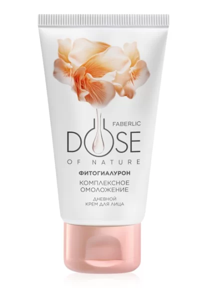 Дневной крем для лица «Комплексное омоложение» Dose of Nature от Faberlic настоящий эликсир молодости для кожи. Он бережно заботится о кожном покрове на протяжении всего дня, создавая невидимый барьер против преждевременного старения. Крем создан на основе инновационной формулы с использованием концентрированного фитогиалурона, благодаря чему он глубоко увлажняет и питает кожу, а также обеспечивает эффективное разглаживание морщин и возвращение коже былой упругости и эластичности.