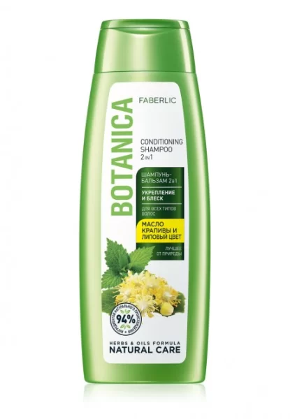 Шампунь-бальзам 2 в 1 для всех типов волос «Укрепление и блеск» Botanica от Faberlic обеспечивает прядям комплексный уход и глубокое питание. Активная формула с липовым цветом и маслом крапивы мягко, но при этом эффективно очищает локоны от загрязнений, не нарушая естественного баланса кожи головы. Благодаря натуральным активным веществам, вошедшим в состав средства, оно глубоко увлажняет и питает каждый волосок, восстанавливая его структуру и предотвращая ломкость.